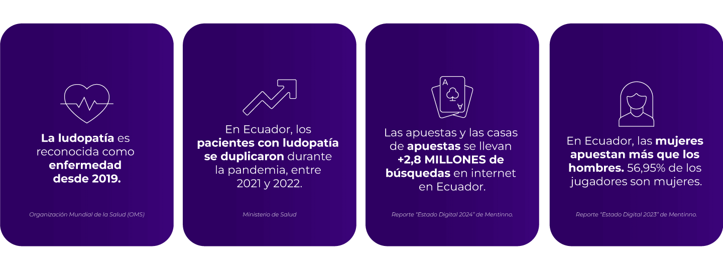 - La facilidad con la que se puede apostar en línea representa un grave riesgo, especialmente para niños y adolescentes, cuya inmadurez los hace más propensos a caer en conductas impulsivas. De hecho, el “Reporte Digital 2023”, de Mentinno destaca que, en Ecuador, casi el 40% de los jugadores son jóvenes de entre 18 y 24 años.