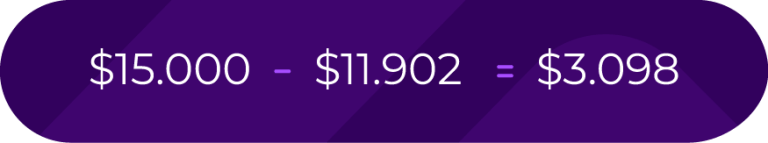 Consulta en qué rango se ubican tus ingresos anuales. En este caso sería $11.902 – $15.159. Veamos entonces: