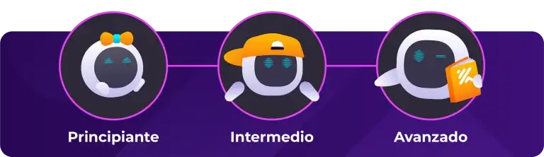 Para evitar que el aprendizaje se vuelva algo demasiado tedioso para nuestros usuarios de Kamina Academy, un examen diagnóstico sencillo pero cuidadosamente preparado los ubica en el nivel de conocimiento perfecto para que empiecen su ruta de aprendizaje, siempre a su ritmo. Estos niveles son: